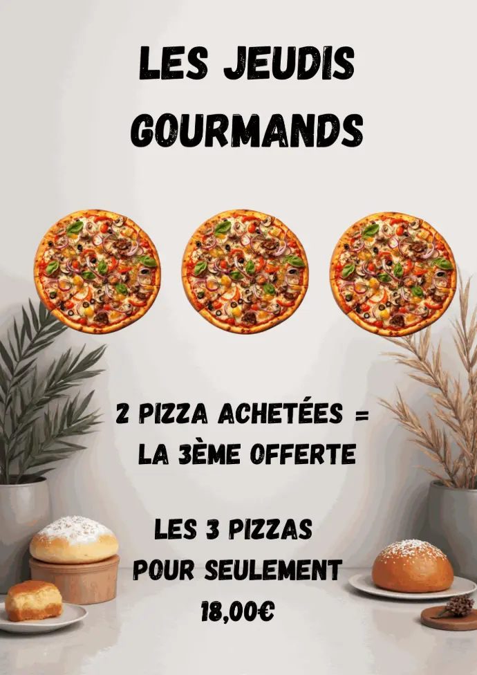 1 PIZZA ou 1 PLAT DU JOUR ou 1 AMÉRICAIN ou 1 BURGER FRITES ou 1 WOK ou 1 TENDER DE POULET POTATOES